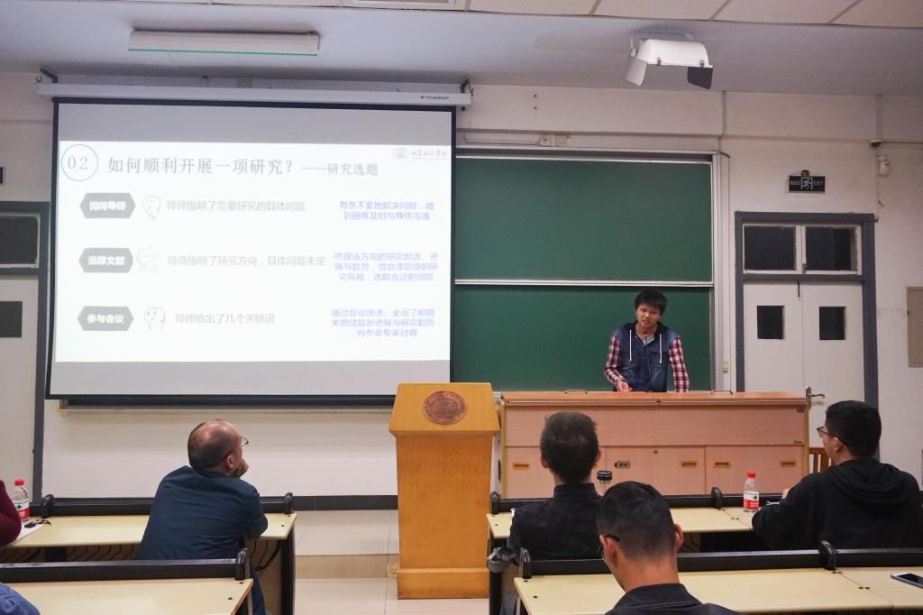 “三好研究生标兵”陈伟、“博士生国奖获得者”周坤结合自身经历围绕导师选择、研究开展、论文撰写投稿、如何提高科研效率等实用知识展开分享,帮助现场同学梳理学业科研难题。同学们踊跃提问,深入交流研究生期间遇到的问题。现场气氛欢欣热烈,知识的碰撞与研究生生涯的心得感悟交织充盈着活动现场。
