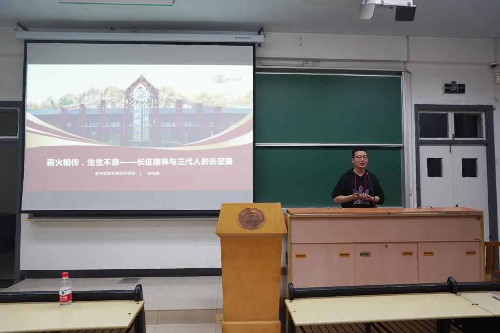 在党史学习环节,校学讲团的李鸿鹏带领大家一起回顾长征精神与三代人的长征路。从红军的万里长征路,到中国航天的科技长征路,再到脱贫攻坚的扎实长征路,每一个时代都有无数英勇的先驱先烈为了祖国的强盛和人民的幸福生活奉献自我。同学们认真聆听,深受鼓舞。