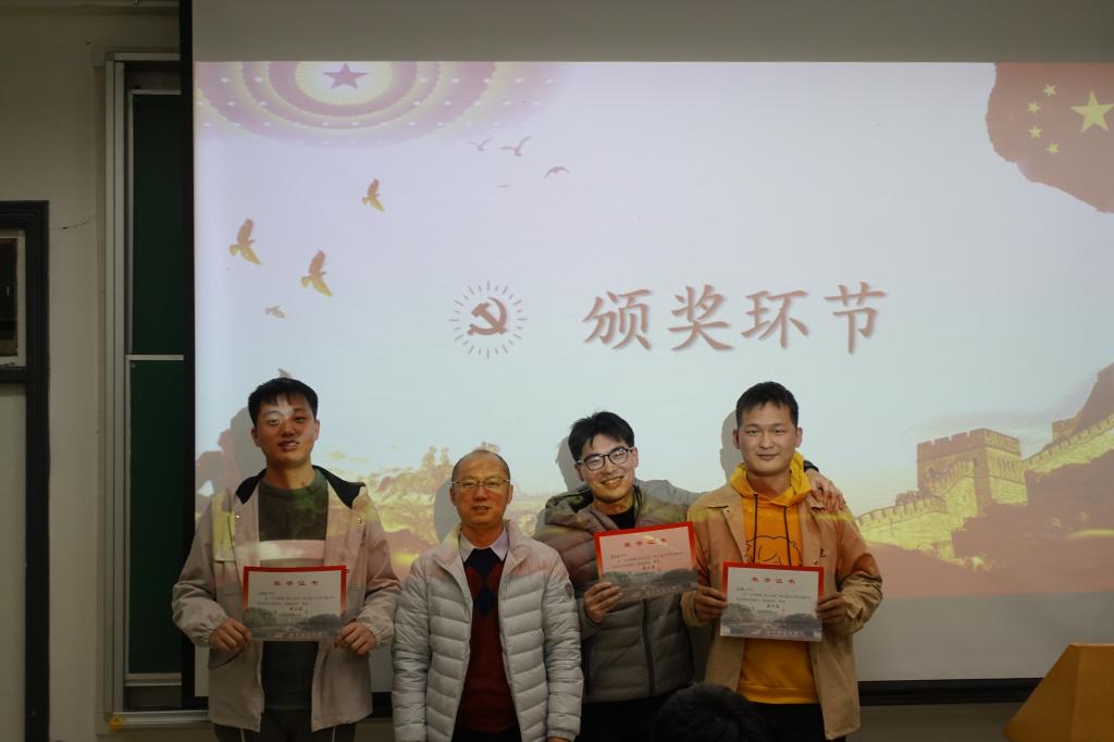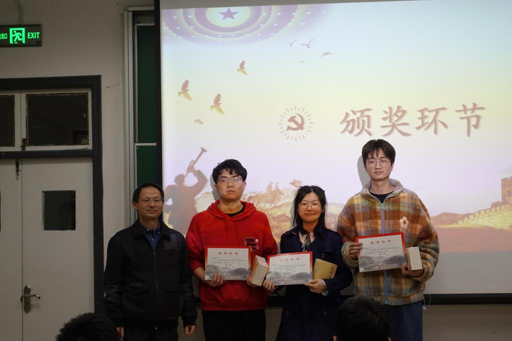 经过一轮轮的比拼,最终来自航空宇航硕博第一党支部的黄冉冉、马杨、张澳荣获本次党史知识竞赛的第一名,来自研究生力学第五党支部的傅欣荣、高鹏、周海洋荣获第二名,来自本科力学党支部的张忠喆、李梦天、杨万里荣获第三名。公司教师为获奖同学颁发证书及奖品。
