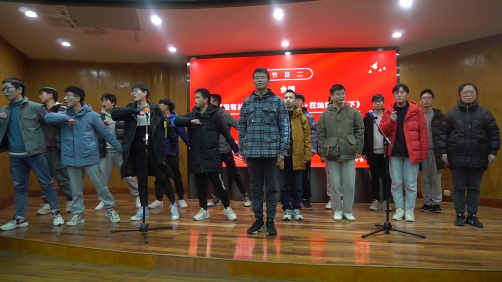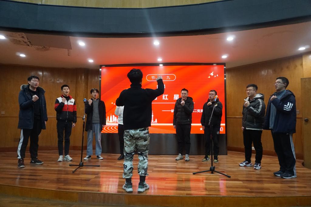 “红星闪闪放光彩,红星灿灿暖胸怀”,宇航硕博第二党支部也带来了一首家喻户晓、朗朗上口的曲目《红星闪闪》。单程军同学特别出演指挥手,支部同学们引吭高歌、铿锵有力,给现场观众留下难忘的印象。