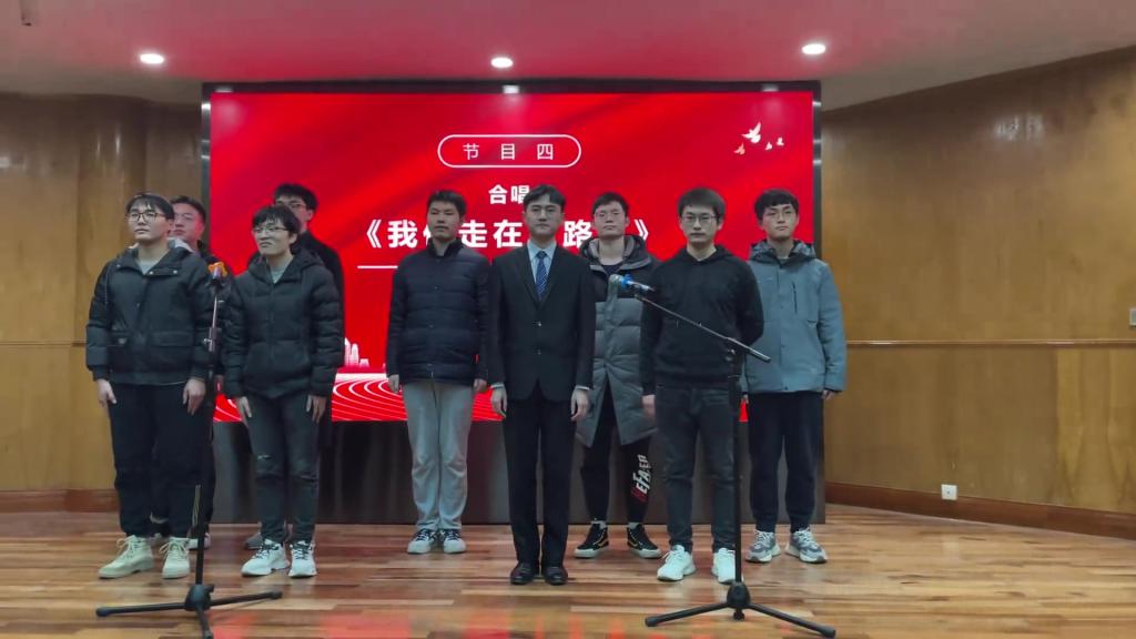 研究生力学第四党支部带来了歌曲《我们走在大路上》。他们特意在演唱前加入同名诗歌的朗诵,深情表达对祖国的热爱和对党的敬意。“我们走在大路上,意气风发斗志昂扬”,“勤恳建设锦绣河山,誓把祖国变成天堂”,荡气回肠的歌声抒发了航院学子朝气蓬勃、奋发向上、投身报国的青年之志。