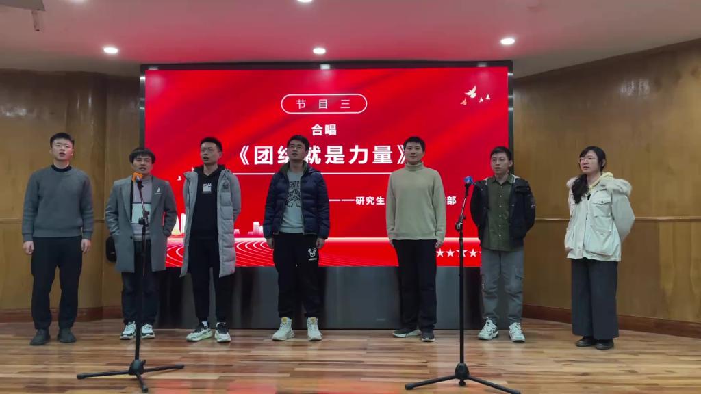 如果奇迹有颜色,那一定是中国红,如先烈抛头颅洒热血深扎扬起的五星红旗,如无论身处何地一腔热情只为家国的我的中国心。研究生力学第五党支部演唱了这首《我的中国心》,他们手握五星红旗置于胸口,用深情豪迈的声音将歌中的情感完美演绎,打动了全场。