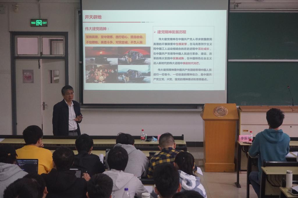 开班仪式结束后,李振环以《中国共产党人的精神谱系》为主题,向全体预备党员讲授专题党课培训。他从精神谱系的来源与背景讲起,围绕四个时期展开,重点介绍了四十余个先锋精神与典型代表人物。从“勇闯新路,艰苦奋斗”的井冈山精神,到深刻展示中华民族自强不息的民族品格的长征精神;从“无私奉献,自力更生”的两弹一星精神,到“特别能吃苦、特别能战斗、特别能攻关、特别能奉献”的载人航天精神,再到中国航天人在建设北斗全球卫星导航系统过程中表现出来的新时代北斗精神;还有抗洪抗震抗疫等“万众一心、众志成城”的团结大无畏精神。李振环结合自身经历和体悟将一个个事例、一段段历史娓娓道来,现场同学们聚精会神地聆听,从中国共产党人的伟大精神中汲取奋进新时代的磅礴力量。