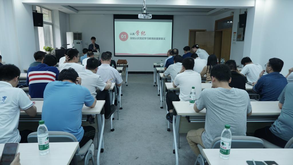 罗君君以《学纪·知纪·明纪·守纪——始终做到忠诚干净担当》为题,从认真学纪、全面知纪、以案明纪、笃行守纪四个方面深入阐述党纪学习教育的重要意义,详细解读《条例》新修订的重点内容和“六大纪律”的具体要求,强调要持续强化惩治违纪行为的警示震慑,告诫全体教师不断养成忠诚干净担当的高度自觉。罗君君结合教育系统多个典型案例,强调要以纪律为戒尺,坚守底线,不碰红线,不断深入学习贯彻习近平总书记关于加强党的纪律建设的重要论述和新修订的《条例》内容,以更高的标准严格要求自己,自觉用党规党纪校正思想和行动,切实为公司各项事业发展提供坚强纪律保障。