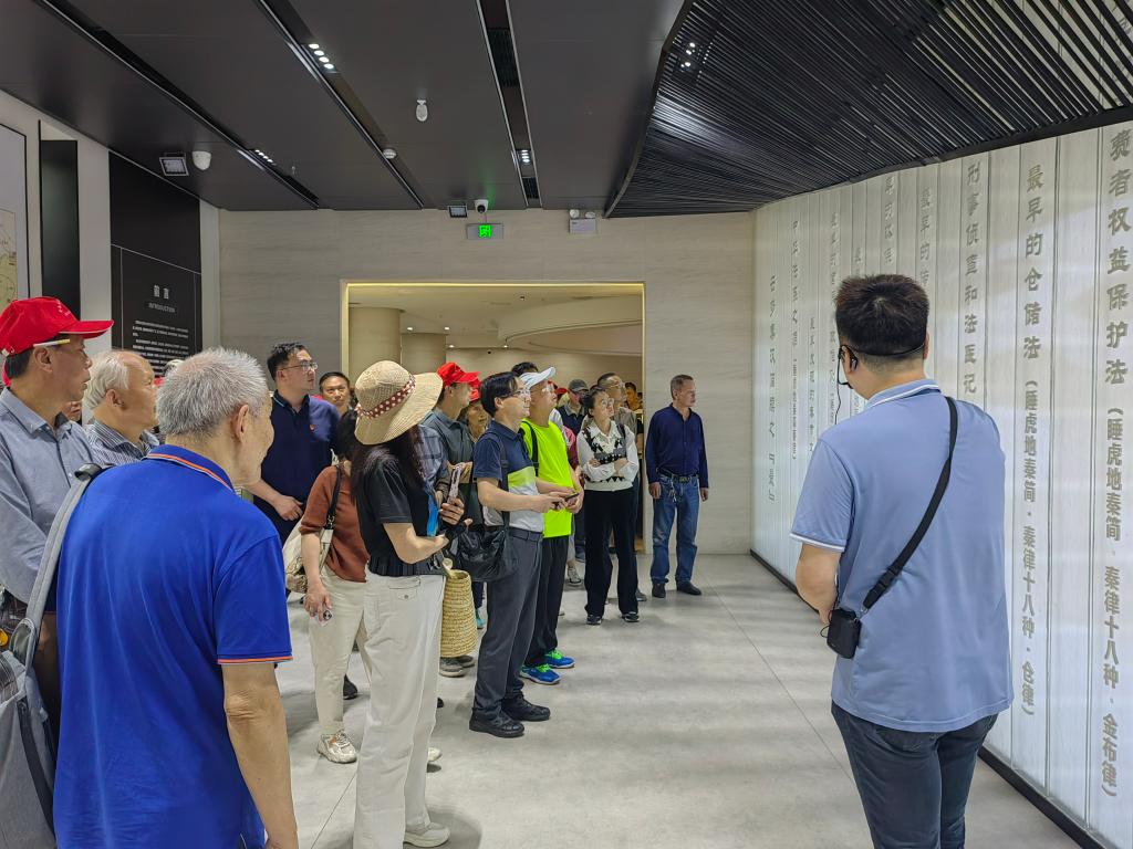 随后队伍又来到承载着厚重历史底蕴的云梦祥山博物馆,沿着习近平总书记的考察之路,在讲解人员的带领下参观馆内丰富多样的文物陈列,聆听楚秦文化历史的回响。秦代竹简、木牍家书、秦汉漆器等珍贵文物,跨越时空诉说着千年前的政治、律法、经济、文化、生活的发展脉络。党员们穿梭其中,探寻中华文明一脉相承的基因密码,惊叹于先人的智慧与创造力,民族自豪感与文化自信心油然而生,爱党爱国情怀深深扎根心底。