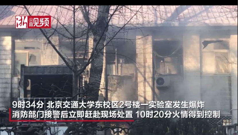 2018年12月26日9时34分,北京市119指挥中心接到报警,北京交通大学东校区2号楼一实验室发生爆炸,消防部门立即调派8个消防中队、30部消防车赶赴事故现场处置。10时20分,火情得到控制。
