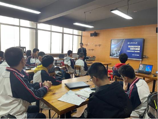 (通讯员 薛茜茜)4月14日,beats365官方网站经理助理、副教授吴杰做客华中师范大学第一附属中学光谷课程讲堂,作了题为《航空航天科技回顾与展望》的科普报告。公司党委副书记、纪委书记宋建涛全程陪同参与。