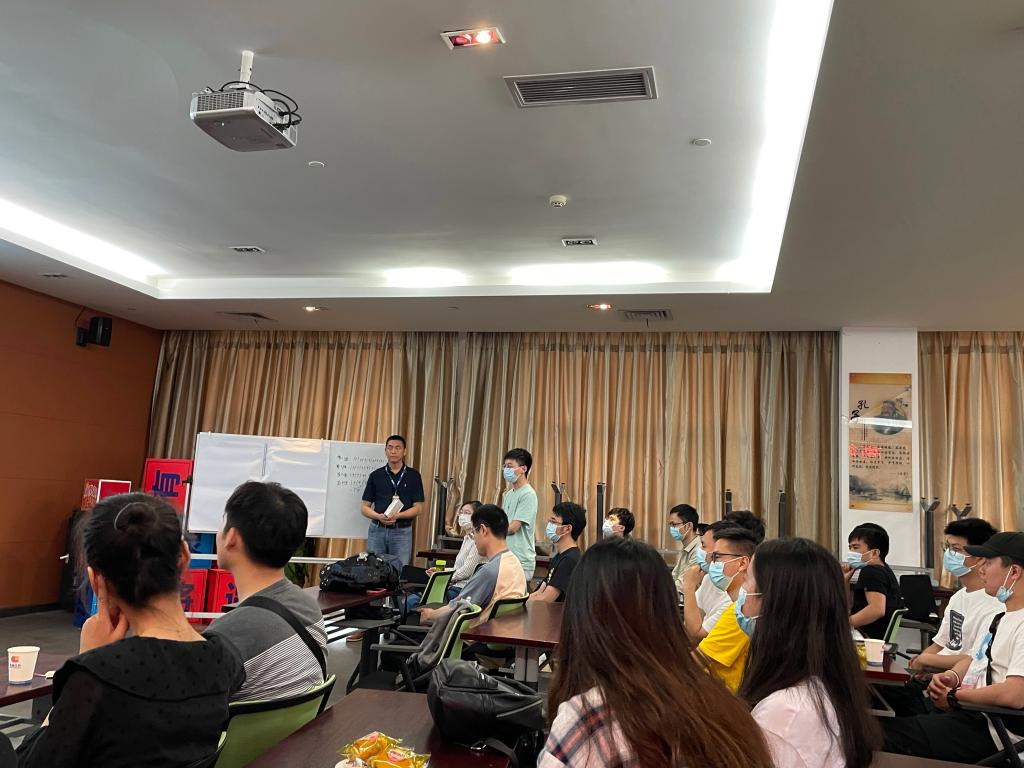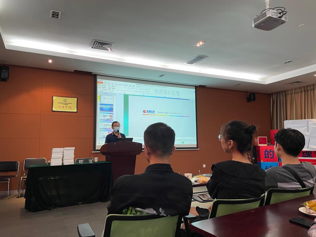 在提问交流环节,同学们踊跃发言,就高德红外的入职培训、培养发展体系、产品研发计划、专业学科需求等方面提出自己的想法和疑惑,黄所长也耐心细致地一一为同学们解答。之后人力资源部徐主管也向同学们介绍了高德红外2022届校招需求情况,并就企业文化、用人理念、发展历程、发展机制、多维晋升渠道、五“新”人才培养体系、员工福利等方面进行讲解。