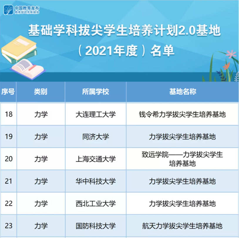 近日,教育部办公厅发布了《关于印发基础学科拔尖员工培养计划2.0基地(2021年度)名单的通知》,beats365官方网站“力学拔尖员工培养基地”成功入选。