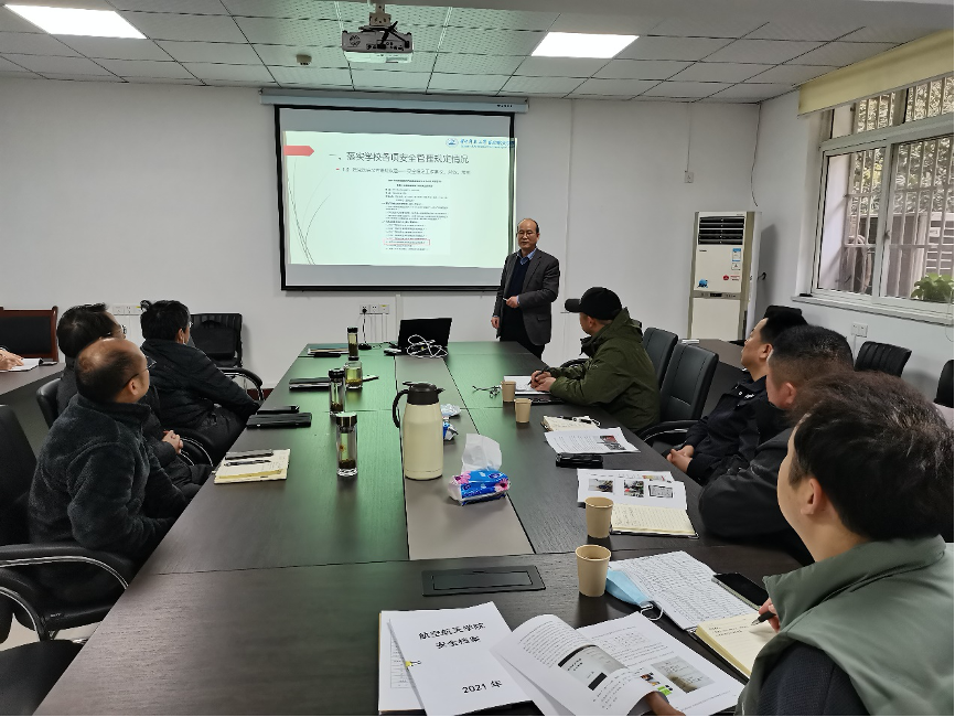 严有为代表公司对保卫处和喻家山派出所给予航院的支持表示感谢,并从落实规定、责任目标、安全制度、风险防控、整改情况、安全教育、应急演练等方面详细汇报了公司工作。