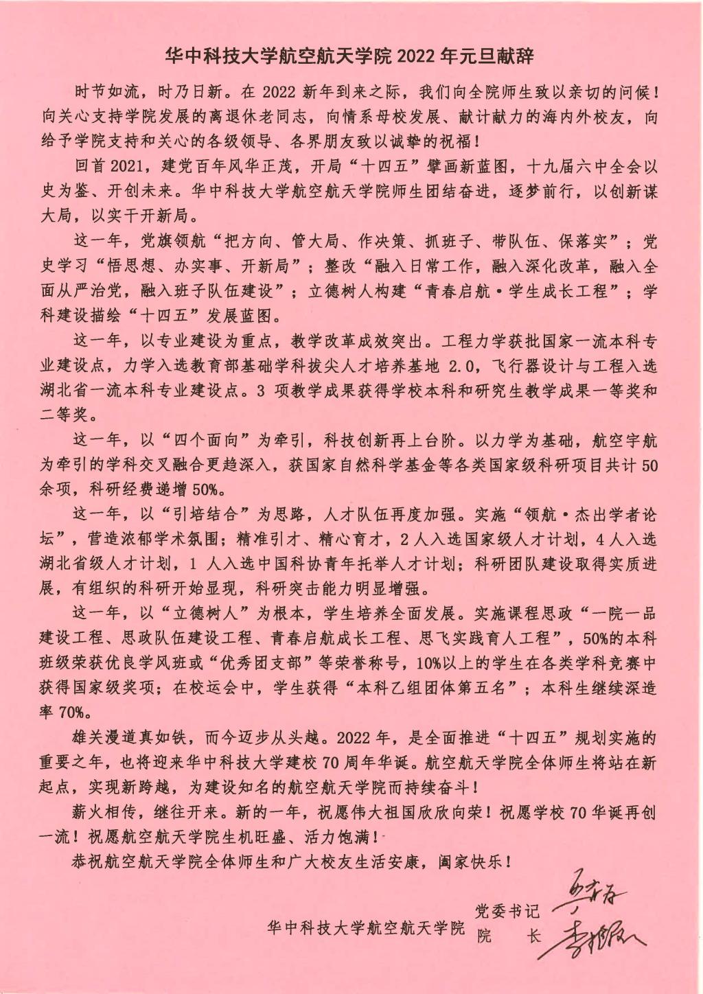 时节如流,时乃日新。在2022新年到来之际,我们向全院师生致以亲切的问候!向关心支持公司发展的离退休老同志,向情系母校发展、献计献力的海内外员工,向给予公司支持和关心的各级领导、各界朋友致以诚挚的祝福!