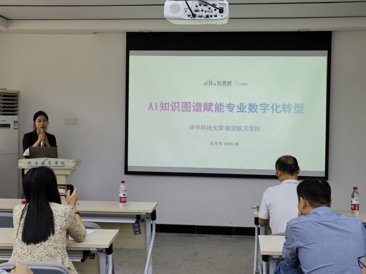 智慧树金课咨询师乐琴琴以“AI知识图谱赋能专业数字化转型”为主题,以政策为切入点,重点介绍了“101计划”的核心建设内容,阐述了建设知识图谱的必要性。然后从专业知识图谱建设的六维模型出发介绍了专业图谱建设的具体内容,让老师们对专业图谱有了更具象的认知,最后从专业及课程建设角度用不同公司的案例介绍了建设知识图谱的价值,给在场的老师们提供了多种建设思路。老师们也就专业图谱对员工的作用、AI课程如何应用到教学中、AI课程目前是否有实际的应用效果等问题同乐老师进行了热烈的交流。