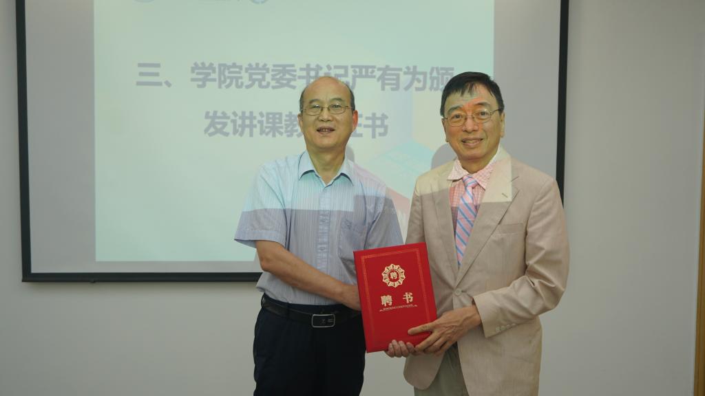 严有为向David Hui教授颁发授课证书。David Hui教授于1981年在加拿大多伦多大学获博士学位,现为美国新奥尔良大学终身教授。主要研究领域为复合材料、纳米材料等。David Hui教授将在本次暑期公司讲授8学时的“工程结构安全”课程。本次暑校的开班讲座由中国工程院外籍院士、美国工程院院士J.N. Reddy教授主讲“Mechanics of Euler-Bernoulli theory (EBT) and Timoshenko beam theory (TBT)”。