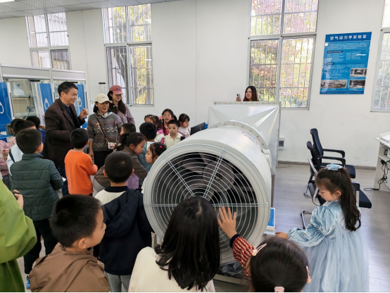一迈进实验中心,小朋友们的视线便迅速聚焦于琳琅满目的实验设备和仪器,在实验指导老师丁华明的带领下,孩子们近距离感受静压传递自动扬水的神奇现象,观测不同形状流道中水的流场迹线,同时还参观了低速风洞和高速风洞实验室,探秘风洞的原理及相关的实验现象。