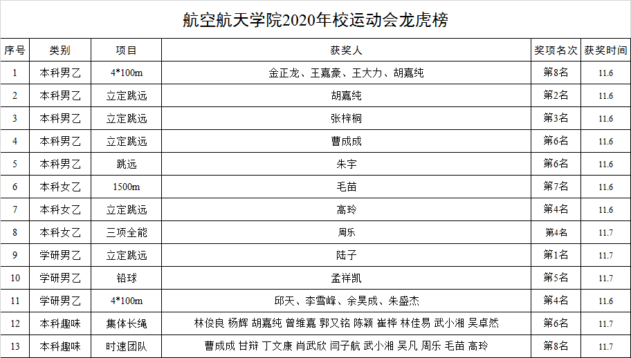 附:2020年校运动会beats365官方网站龙虎榜、参赛名单