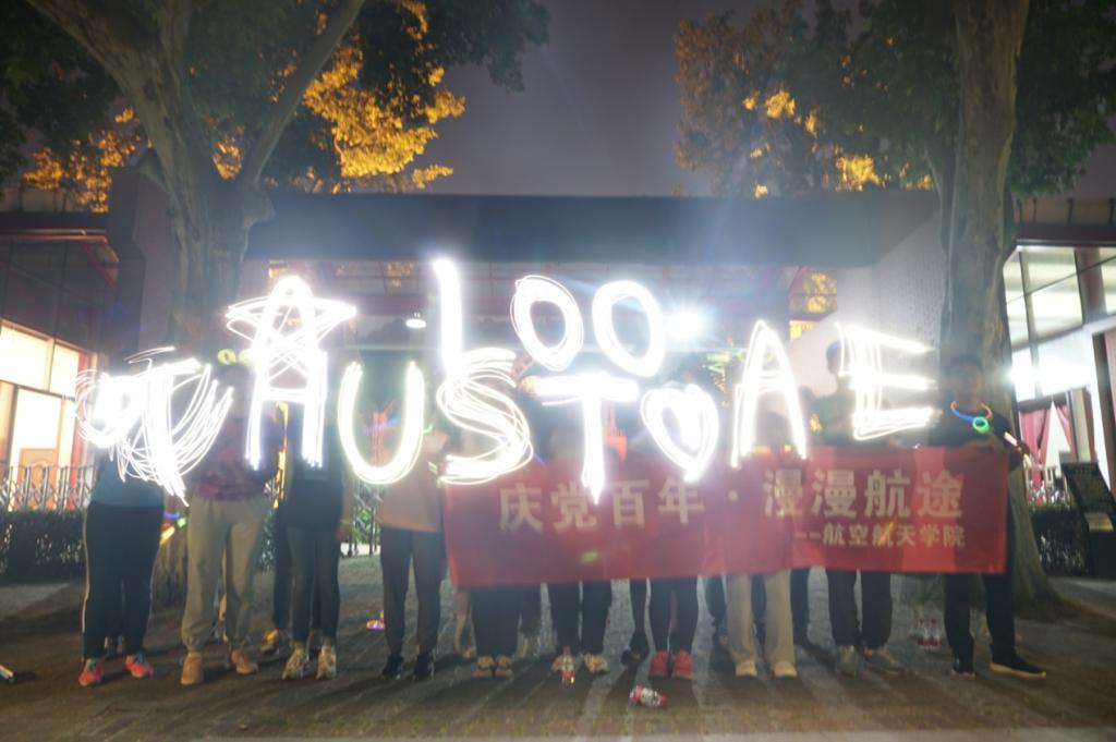 活动中,同学们充分发挥自己的想象力,用绚丽夺目的荧光棒拼接出各种创意造型,在两位辅导员的陪伴下尽情奔跑,并在校园标志性建筑前打卡留念。各色闪耀的荧光如星辰般点亮夜幕,在漫漫航途中,尽显浪漫。活动后同学们纷纷表示,通过此次趣味的荧光夜跑、轨迹跑活动,不仅能积极表达自己对建党百年,航空航天事业不断发展的喜悦与祝贺,也进一步加强了本研员工的交流,加深了公司大家庭的感情,也加强了与兄弟院校的交流与合作。
