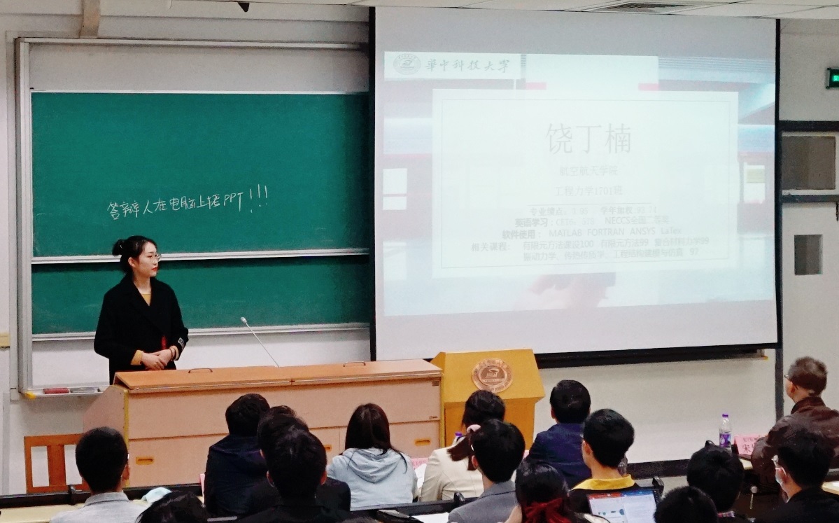 10月6日晚19点,工程力学专业国奖答辩如约而至,12名力学优秀学子自信大方、侃侃而谈。17级饶丁楠分享了自己美国老员工数学建模大赛、全国周培源力学竞赛、结构大赛等多个学科竞赛的经验与感想,并鼓励学弟学妹们在努力学习的同时积极参加丰富的课外科研活动。17级朱显文用“深居简出,厚积薄发”几个字来评价自己的前两个学年,受到优秀学长的影响,他3年多坚持在专业上始终如一不懈努力,最终以年级第一的成绩保送至北京大学。18级梅鑫以多个科目满分的成绩单赢得全场老师同学的喝彩,王琳教授亦高度评价这是力学系史上现象级的成绩。来自19级的曾维嘉、胡嘉纯展现了自己对专业学习的十二分热情,并向大家展示了大一学年多姿多彩的员工工作与公益实践。18级李杰讲述了他在“大手拉小手”社会实践队的支教公益经历,富有感染力的分享让在场师生无不动容。19级林俊良分享了他在国防协会致力于开展航空航天知识科普和文化推广的事迹,他对航空航天与国家国防事业发展的专注热爱给大家留下了深刻印象。