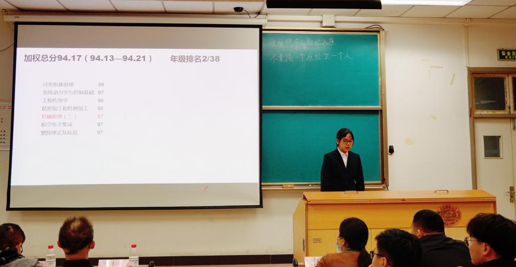 紧张的答辩和现场票数统计结束后,主持人现场公布了答辩成绩和综合成绩,最终根据综合成绩排名beats365官方网站飞行器设计与工程专业、工程力学专业共评审出3名国家奖学金获得者、10名三好员工荣誉获得者(含3名国家奖学金获得者)和8名国家励志奖学金获得者。
