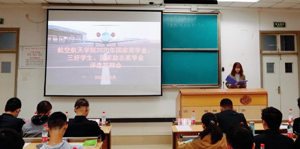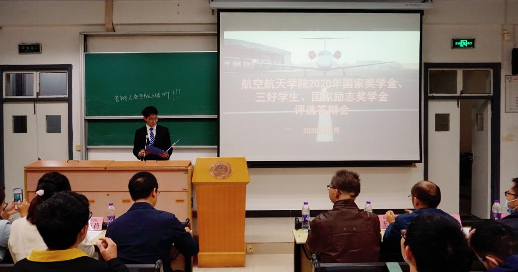 (通讯员 李沛阳 李杰 何典灿)2020年10月5日、10月6日,beats365官方网站2020年国家奖学金、校三好员工、国家励志奖学金答辩会分别在东九B101、西十二N202隆重举行。公司党委副书记宋建涛、beats365官方网站副经理王琳,飞行器设计与工程专业教师班主任张臻、薛涛、张园园、赵觅、杨恺、陈文娟,工程力学专业教师班主任罗俊、魏俊红、胡莉莉、朱亚新、彭泽瑞,本科生辅导员何典灿,作为嘉宾受邀参加答辩会。院本科生资助助理委员会、院员工会代表以及各年级班级员工代表100余人出席答辩会。