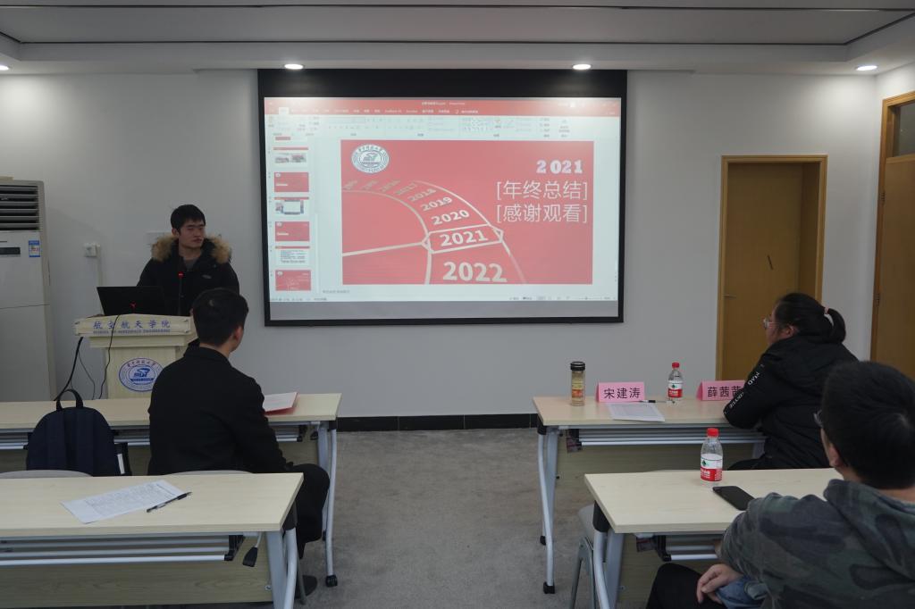 主席团成员首先从抓基础、树品牌、强输出、求创新四个方面总结了2021秋季学期的工作成果。研究生会通过举办多类活动强抓基础,举办第二届“力行·引航”学术微沙龙树立品牌,举办第一届超音速杯体育嘉年华追求创新,通过微信公众号、海报、横幅等宣传平台与方式强化输出,打造严谨大气的航院形象。