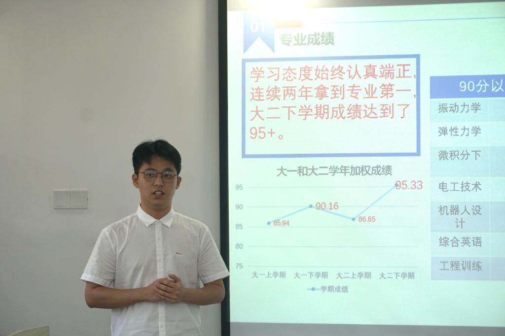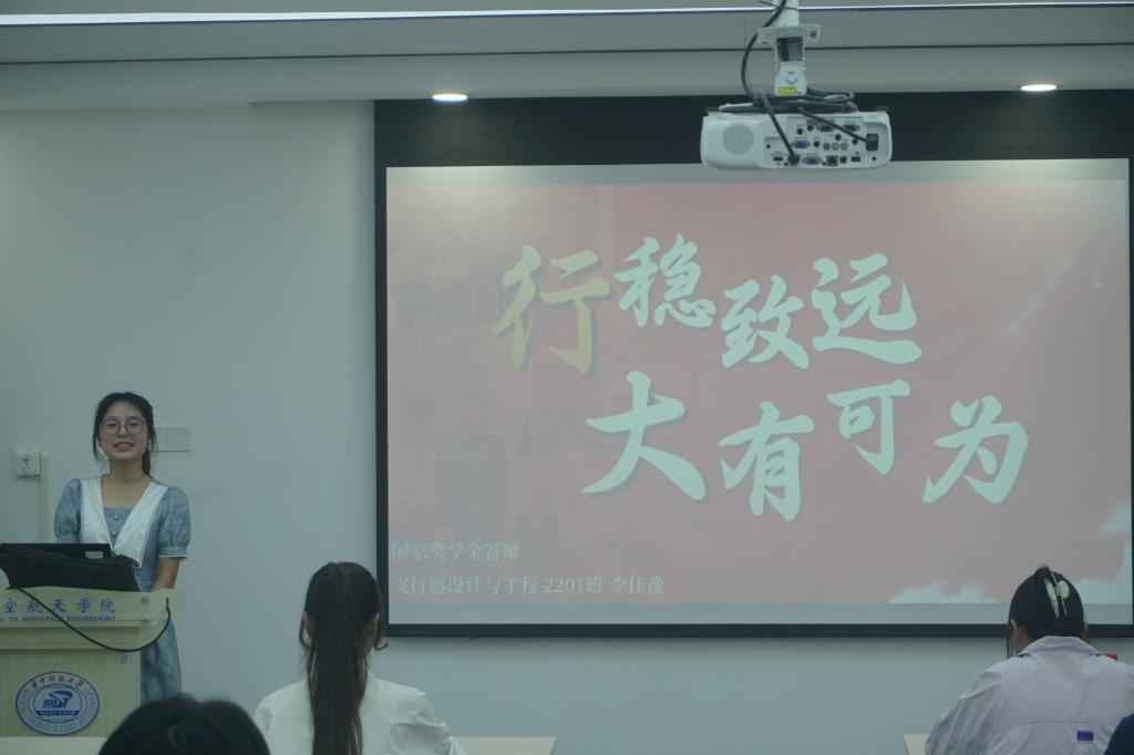 经过前期的申报和公司初审,两个系共21名候选人参加答辩评选。答辩分为答辩者的五分钟自我展示和评委提问两个环节。候选人依次上台通过精心制作的PPT展示了自己取得的优异成绩,讲述了在学业上的努力拼搏,在科创竞赛上的自我突破,在科研成果上的创新收获等,并介绍了自己在员工工作、实践活动、社会公益等其他方面的优异表现。他们拼搏向上、积极进取的奋斗经历和踔厉奋发、空天报国的理想抱负深深激励着在场的同学们。