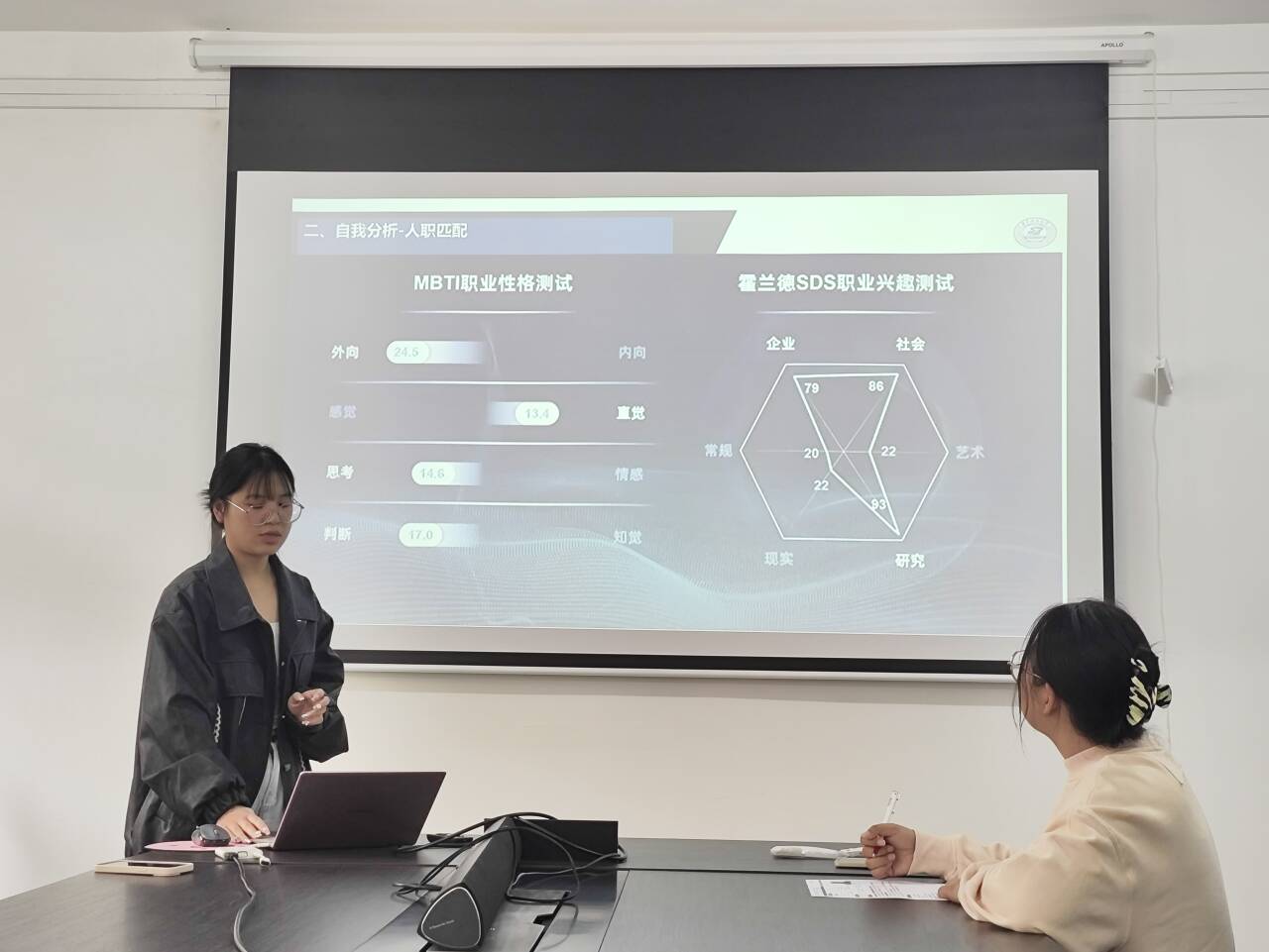 参赛员工通过PPT展示了自己对未来职业的方向规划和作出的努力,讲述了自己对就业环境和行业形势的分析与看法,对自身的长处和不足进行深入分析。就业老师薛茜茜认真细致地点评了参赛同学的报告内容和求职简历,并围绕参赛同学的实际就业意向和就业技能掌握情况进行深入交流,给出指导性意见和建议。