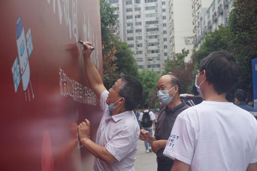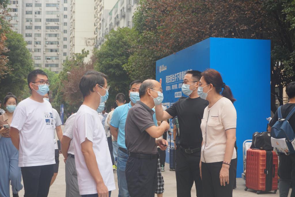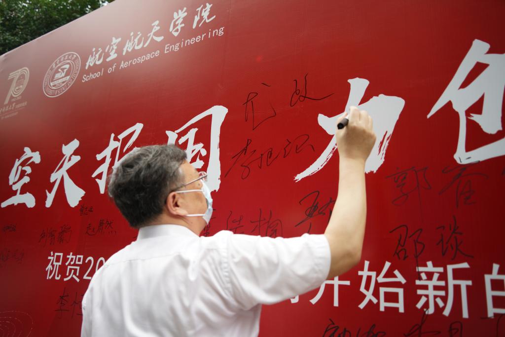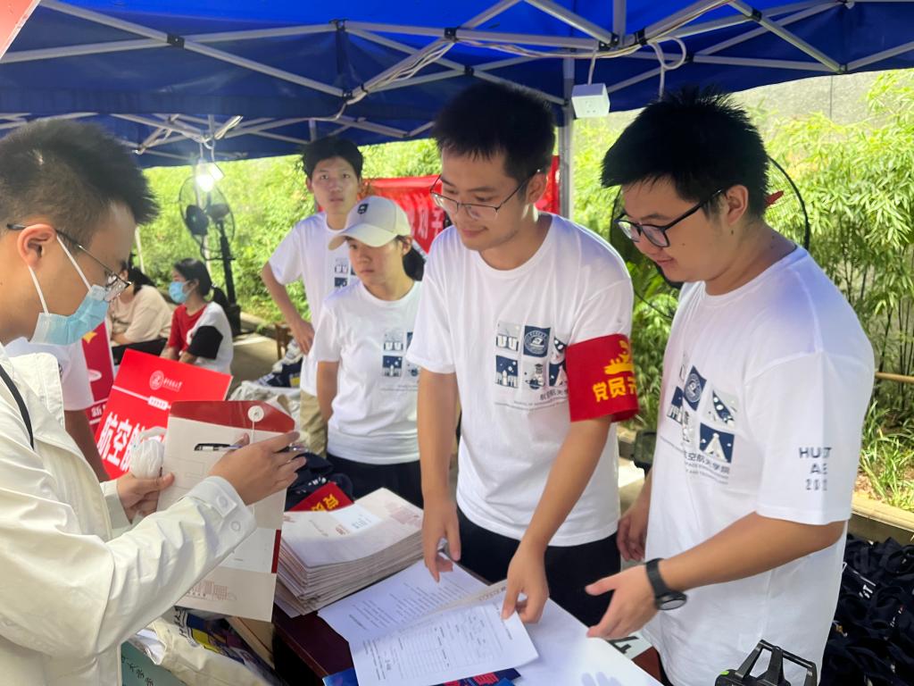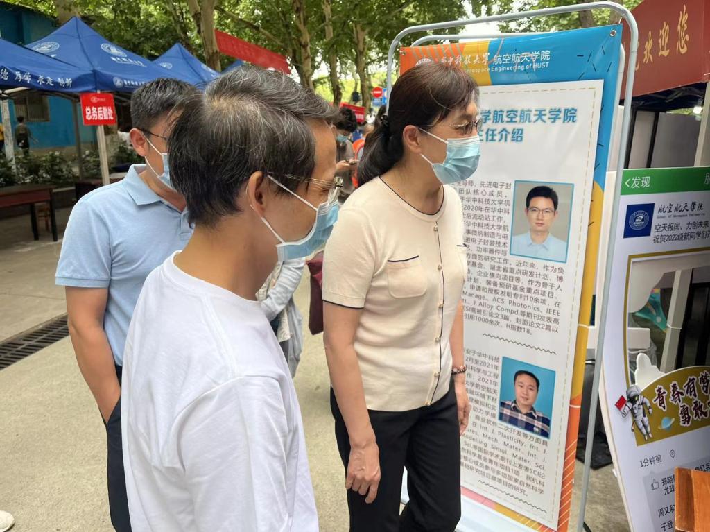 8月30日,董事长尤政,公司党委副书记马建辉,副董事长湛毅青、梁茜来到紫菘迎新现场,在beats365官方网站迎新点,了解公司的迎新工作安排,向新生与志愿者们致以问候,并与新生们亲切交谈,鼓励新生们心怀报国情,勇逐空天梦,学在华中大,不负青年志。